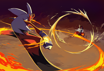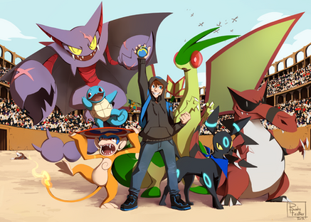 Love the colors and the composition--how the eye travels from the trainer to the Altaria then down to the other two....I love it completely.