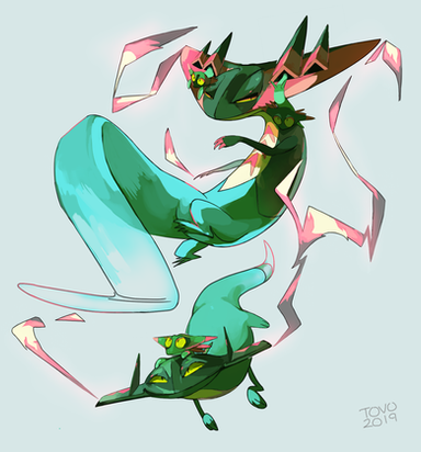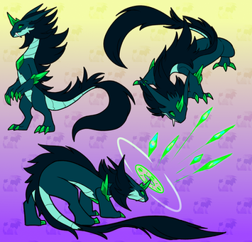 Spirex is a gryphon OC of me. He has a black thin body. When his green marks light, he becomes physically stronger._____________________