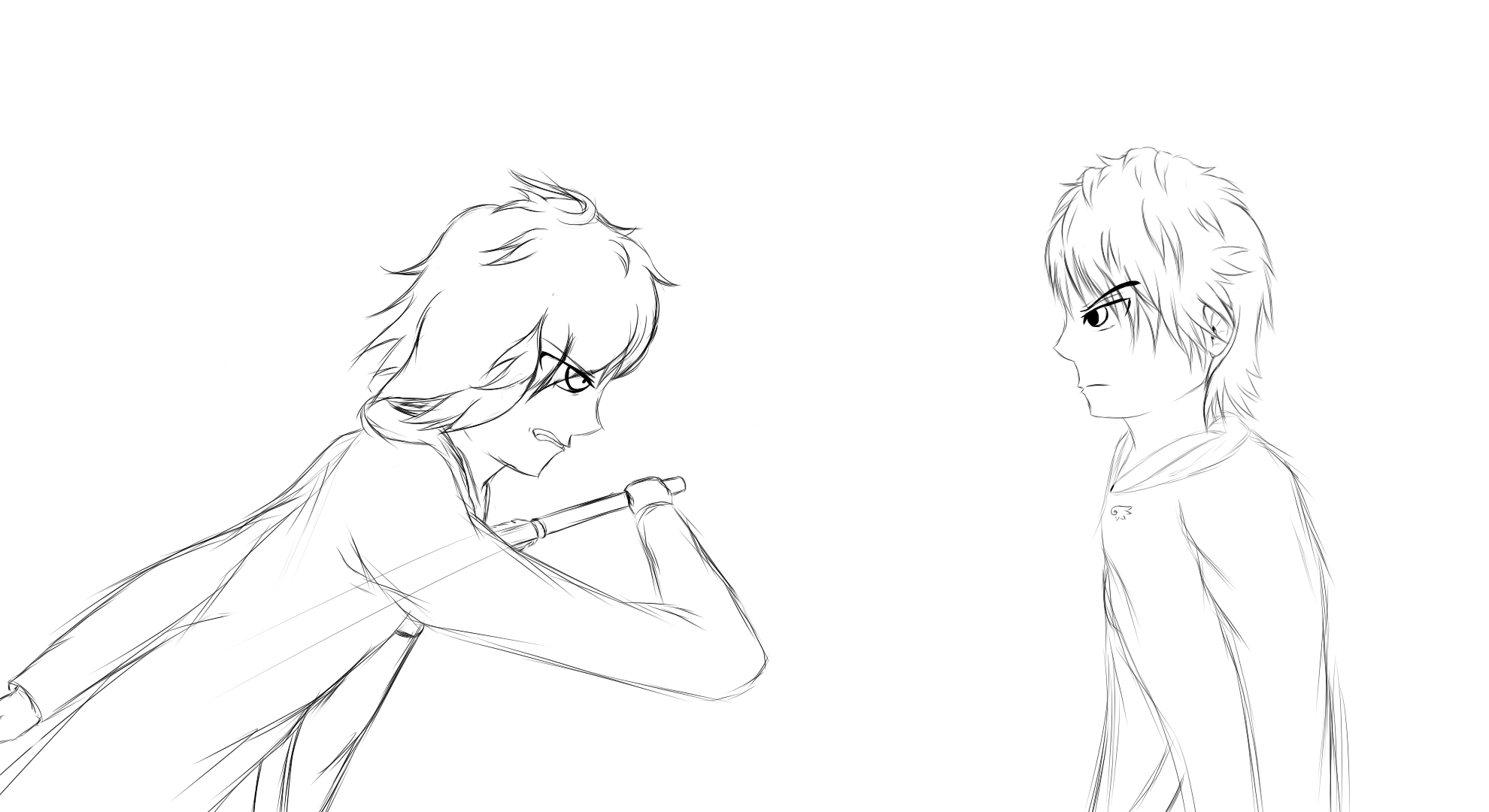 Here's my first one. An action-ish scene that has one of the characters jumping pretty far. It kinda doesn't look right to me, but practice is practice. One of the characters is an adopt that I claimed from . The original design was really NSFW, so I had to change up this design. Right now it's only a temp redesign. The other character is... Well, he's kinda important, I guess.