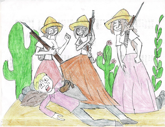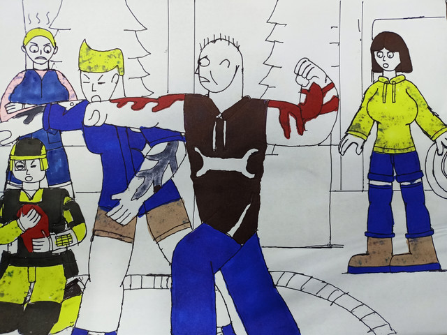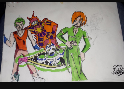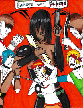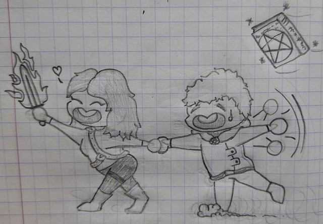Elissa has this whole backstory where she left her home and ran off searching for fresh and glorious vengeance. During that time, she amassed a new crew, and those two orange haired doofuses were the first to join. A traveling healer and a shamed knight. Both of whom were saved by Elissa and followed her intently despite her not initially wanting them around. The three of them got into a whole bunch of troubling situations, one of which including this one right here, drunk and practically dying of thirst. At least they look like they're having a good time.This drawing irks me something fierce since I know I can do better. But it's also a very fun drawing to me. It deserves a place in my gallery.