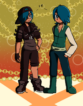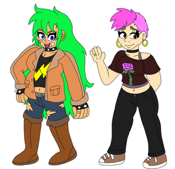 Remember Jenn? She's Clover's best friend. (You can even see her in Clover's original ref sheet. What a cute cameo! I completely forgot about it!) Had I seen it through to completion, you would've seen her play a pretty big role in STAROCT when I was still a part of it. As a character, I have a lot of plans for her as a decent background character, but I honestly had no intentions of drawing her often......That is until Beth came along! Designed by , Beth was a character that looked eerily similar to Jenn. That was reason enough for me to adopt her. I had a few vague ideas about what I wanted to do with her, and all of them involved her being a blood relative to Jenn. Over some serious consideration, I decided to just make her Jenn's Identical twin and left it at that... At least, I WOULD HAVE if it weren't for specific design choices that made me overhaul a lot of her back story. For example, the cheek tattoos on Beth. Her having those overlaps with another OC's back story, which means Jenn has to have those tattoos too. Now I'm reworking what I had planned for Jenn. Oh well. There's also expanding on the green highlights in Jenn's hair since they were so thin in her original design, but now they're way more noticeable. I dunno how to feel about it, since a chunk of me likes it, but another chunk liked the old way it was done too...