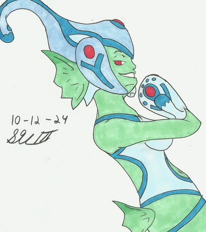 Meet Milmun! Wait, did I say "meet"? Sorry, you've already met her. I did a drawing featuring her not too long ago. She's been a character I had in the backlog since the first Round of Demon Queen Amber OCT. She was meant to be a character for Elissa to fight while Ferain handled the R2 opponent (assuming that the R2 opponent was too weak for Elissa), however, those plans fell apart as soon as I lost R1. Despite that, however, I had this character fully planned out by the time it was confirmed that I was out of the tournament. Instead of throwing away such a cool character, I decided to keep her around for something.Milmun was inspired by a superboss in KH3: Remind. You'd know the one if you played it. The lightning alone gives it away. That fighting style was so unique and energetic! I wanted to imitate that style.The lightning orbs you see around here are actually Iron spheres. Which... Uh... Okay, I don't know how to structure this sooooo I'll save it for some reference sheet!