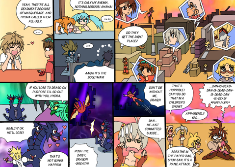 This is another Paranatural Shitpost. Did this a few years back featuring the orphans of war in the !... No really, every character featured here is an orphan. They are all also the only Orphans that were made for the OCT full stop! That's crazy right?! The girl in the background is named Chrona. She was created by (you can also find her here) and is one of the 4 generals of Queen Amber's army! The only other character not made by me here is Ciro, who was created by . He's an orphan with unknown origins. He lived and died in the Discord server so I don't have a link to his ref sheet, but I still think he's kinda cool.This comc is based on page 22 of the paranatral web comic. Please, read the entire thing, you wont regret it! I know I didn't! Lately, the author has transistioned to writing the story out as opposed to just drawing it. I don't really know how I feel about it right now, but I still do love the writing's level of wit and charm, so it can't be all bad right? Just read it damnit! This little skit felt PERFECT for these 5 so I couldn't really hep myself. Even now, reading ths makes me want to do another Paranatural inspired skit. But that'll be for another time.