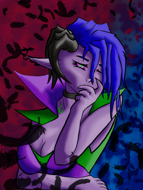 Aside from her backstory, the lore surrounding succubi in my world is pretty standard. You have the usual fare with the exception that their hair color dictates what their abilities are. All succubi have purple hair, but the ends of their hair will always be a different color. In Prislia's case, her hair color gives her the ability of "Love at first sight". It's a hypnotic spell that, as the name implies, causes the target to fall in love with her. It's effectiveness depends on how attractive Prislia is to the person in question. If they don't find her attractive, then the spells effect will only go as far a as a heavy handed crush. On the other end of that spectrum, if you were already madly in love with her prior to her using that ability, then you'll hang onto her every word and whim as if she were your Goddess.
