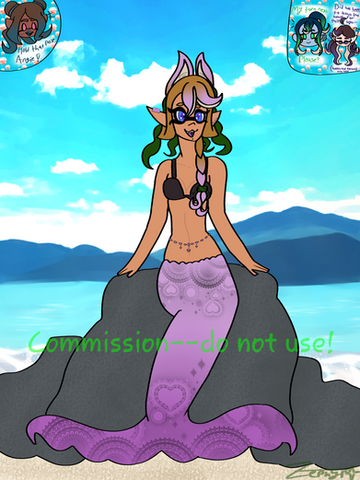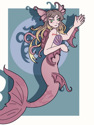 This is Wave! She's, by all accounts, an adopt! Except she's not really an adopt, she's a... um... Mob character asset? I dunno. A friend of mine saw that I was adopting characters and told me about this other method which was less expensive. The designs weren't impressive, but a few did stand out, like this one! I'm pretty hesitant to do anything with this character, but I still have plans for her. If push comes to shove, I'll just redesign her.Wave is a Mermaid and aqua warrior prospect. She's 14 years old and has a keen interest in the world outside of the ocean. She'll often swim above the water's depths to sing beneath the night sky... which causes a ton of unintentional issues. Often, navigators will sink ship while under the trance of her songs. She makes it a point to save any survivor(s) she comes across and swims them to the closest shore, completely unaware that she was the cause of their danger. Currently, she has a crush on her latest save, and he'll sometimes visit while on his quest to go home.