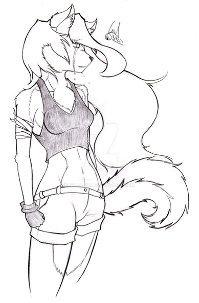 Nice drawing!!!! really like the fur and the marks on her clothing, you really got a great sense of style!! great job!!