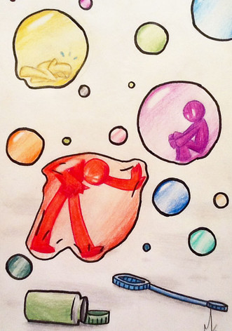 BUBBLESBUBBLESBUBBLES. I really love how colorful and whimsical this is. Only constructive crit I can suggest is you could draw the edges of their hands and feet, and Max's ears. It's not essential to do so, but the extra detail may lift the picture a little. It looks great though