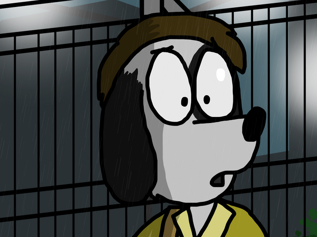 For the proper Sam & Max touch, Max really should have been standing there with the top of his head still sliced open and the rain filling his head like a gruesome birdbath.