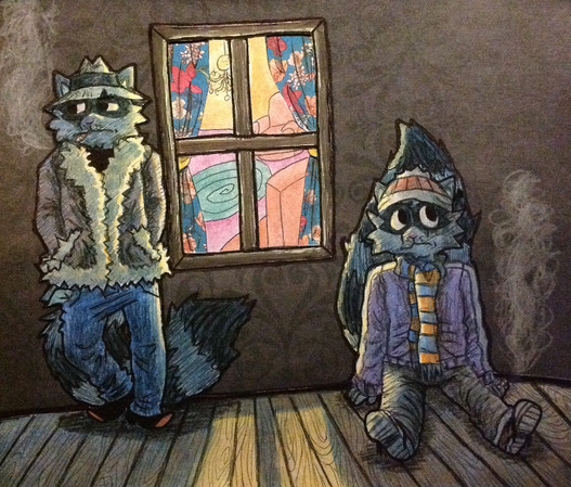 Poor both of them ... *sniffle* And yes, no influx of noir-inspired art is complete without at least one piece featuring rain!
