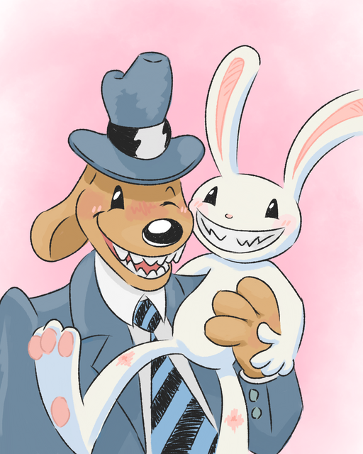 The last of a series of requests by Anonymous Mortal - this being Sam and Max's adorable little reunion hug, wherein Sam was relieved and happy and Max was befuddled.Sorry this took so long btw, hope you like it!