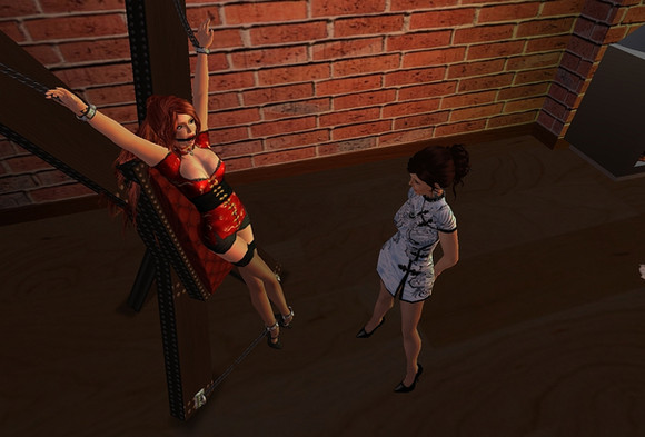 Miss Ruby meticulously paints the skin of her captive with her flogger. When satisfied with the deep red, Ruby flips her weakened captive over and hulls her back up the post upside down now.Ruby: *crack crack!*
