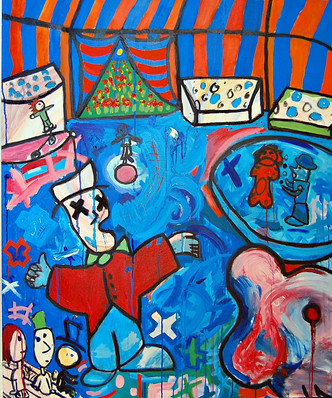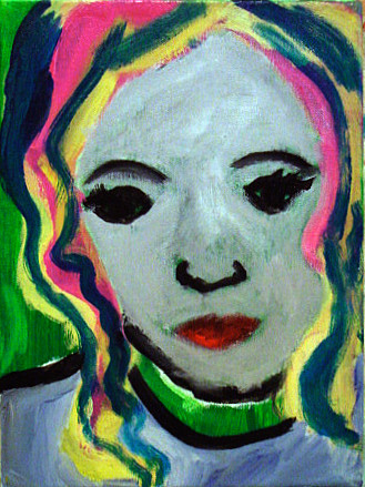 My face + my favorite sweater, my blonde mohawk, my eyebrow piercing, clown red lipstick and an incredulus glance.Related content