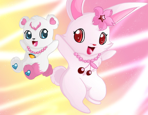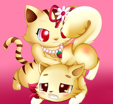 Old lineart is old. But then...I decided to finish this since it's sitting in my computer for so long. Originally I should have finished this last year but then I got occupied and then bored like now. So then better late than never.Also, new Jewelpet...er...Sweetspet debuted last year and I was kinda bit out of touch. so here you go, a not-so-pairing picture of Ruby and the new character, Sakuran.