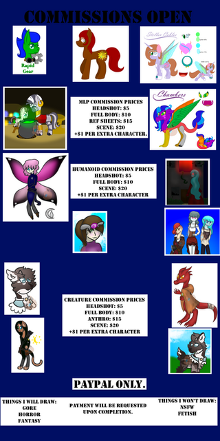 YES, I AM NOW OPEN FOR COMMISSIONS!!!RULES: