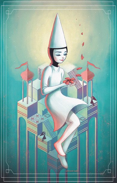 This is fan art from the iPhone game called "Monument Valley" where you control Princess Ida (pictured above) and basically find out who you are and get back home. What makes this game incredible, however, is the art, which utilizes Escher drawings! You need to manipulate buildings in the game and each is constructed like an optical illusion. (Think of those famous impossible stairs).
