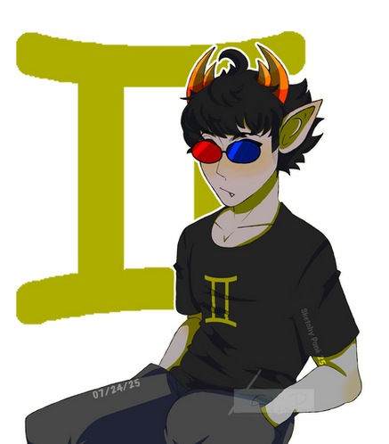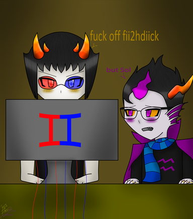 Sollux got the most requests to be pony-fied, so here he is!He isn't too happy about being a pony, though. Or his husktop is malfunctioning. Who knows.
