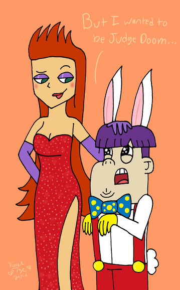 I didn't realize until searching for WFRR stuff online that there were published comics of the universe! I guess there were a lot of copyright strikes or something because I can no longer find them. But, I saw one where Jessica was interacting with Lena, and I thought it was sweet that they looked to be on good terms with each other.It made me think that maybe Lena is a toon that admires Jessica, and thus tries to emulate her (but spectacularly fails because she is written to be her ugly opposite). I liked the idea of Lena being calmer like she is in the comics I found and of Jessica having a softer side towards her friends.