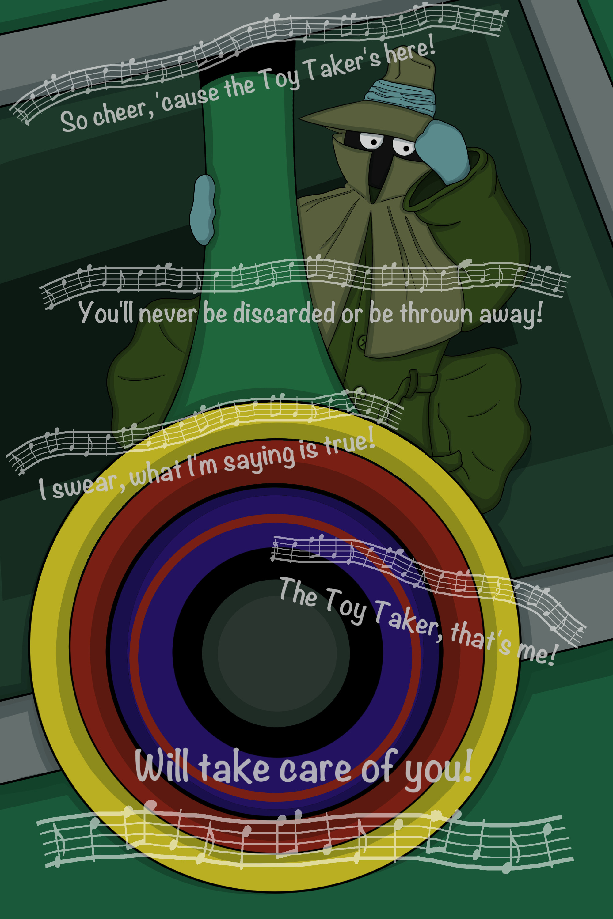 While the original stop-motion Rudolph movie still has some charm to me, I ironically watched the direct-to-sequel CGI animated sequel more with my younger brother when we were little... even if it has NOT aged well. That said, one of the better elements of this film is the anti-villain "The Toy Taker", who essentially walked so Lotso-Huggin'-Bear could run! His mannerisms and song remained rent-free in mind on-and-off through my adolescence all the way up to now. It felt reasonable to do a tribute to him for the winter season as one of my first recognizable anti-villains. I always found his misguided, but understandable motivation to be fitting for his redemption in the end.I hope you all had a Happy Holidays and I wish you all a Happy New Year too!