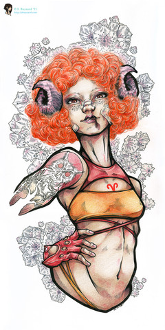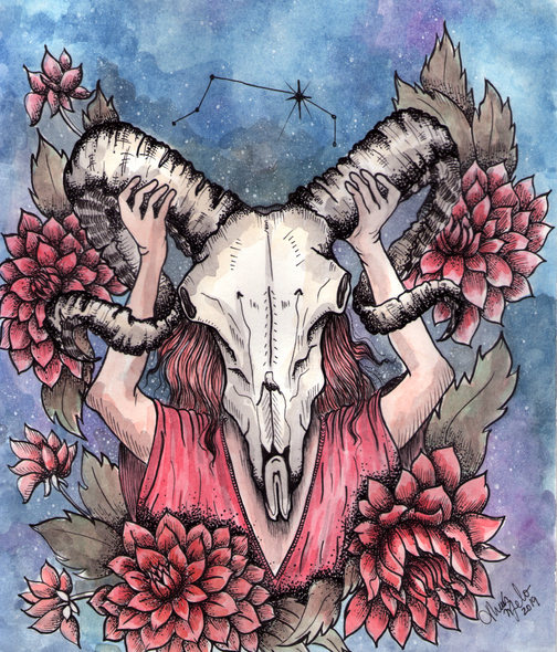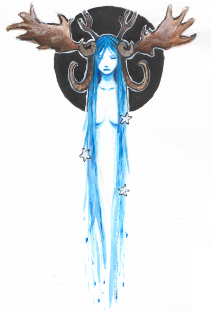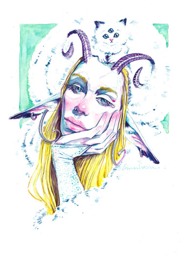 #girl #horns #loon #ribs #surreal #watercolor #watercolorpainting
