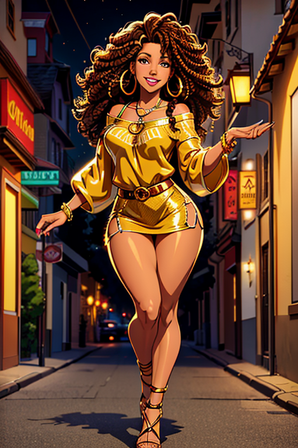 Appearance: Short and average build with tan skin, she has an unlikable feel about her, cold, round light brown eyes, rosy cheeks, a lean face, a round chin, medium-length curly dark blonde hair, wide shoulders, a heavy torso, large breasts, a well-defined waist, plump hips, large hands, and muscular legs.