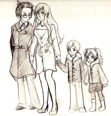 Sometimes when I dream between two worlds I see five stars in a stranger sky...Little drawing for the first page of my new sketch*hrum*book :') My ultimate babies, Saturn and Jun