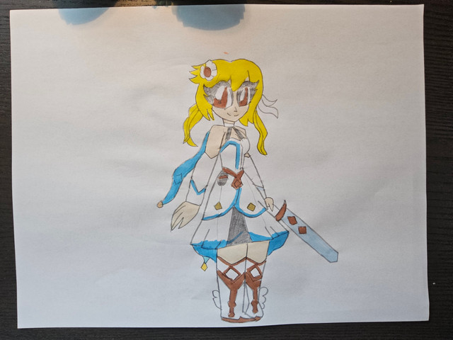 He is the Shadow Spirit off a world called Estrella which is where Ratona is from, in game he did not have a portrait images which made me feel disappointed so I decided to draw his sprite form in a smoother form. Also felt like doing a scaled up drawing with a different pose which I think worked out well, I plan to do this style of drawing for other characters in game as I think a lot of characters had great sprite designs. I believe Aither is not the fighting type but I belive later on in the game he does take on a monster, I really like the hoodie he wears.Trying to work out the clothing he has was tough but I think the outfit I drew out worked out well, honestly I feel really proud of the taller designs especially with how it still gives off a shyer look. The purple colour scheme is also great as I think it is a great colour for the shadow/dark element, I'm pretty sure he has shorts in the sprite and I think they work well with the rest of the clothing.
