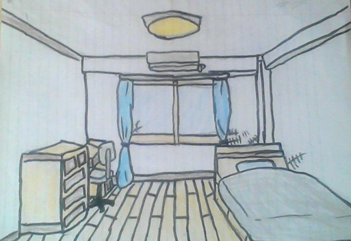 Last night I felt I needed to draw something a little different and eventually came up with the idea to just draw an anime style bedroom with the reference being the room of a character called Yoshioka Futaba. The character herself was in the original image but I wanted to do a scenery only drawing which was pretty relaxing as drawing out the different objects is not too stressful and the colouring went by quicker than I expected. I was not sure about what the wall colours of the original image were suppose to be so I went screw it and just made them yellow since its my favourite colourThe box in the bottom left corner was the starting point as I prefer to start at the bottom of a piece of paper plus I worked from left to right (I forgot to colour the box lol). I was a bit worried about drawing the bed as its from a front view and I thought a sky view would of worked better in my style but the covers and sheets came out quite cute especially with the shelf and cuddly toys behind it. Outline wise the chair and desk felt a bit rough but after colouring them I feel the design came out a lot better (I used the rub out a gray tone effect for the white tone) and is the part that draws my eyes the most. The walls angling also worked out and the window being cut off created added to the look of the room, this is one of those drawings where the individual parts are more simple but they create a nice formation