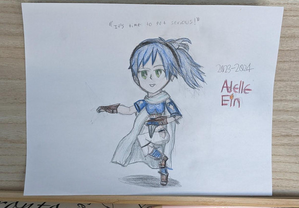 Cherry was a character I designed just for a magazine drawing with me deciding to draw her in a full body style since the previous pictures of her were just half body's. I don't think I ever actually planned on her appearing in the story which is weird since I had her ranked as the 4th best Ghost deck user while Flora was the 13th. I guess I could be tempted to add her in the story it just seem rough cause I feel her being so far ahead of Flora would make her one of the best of the best.Her design was inspired by the an added main character for the Cardfight Vanguard Extra Story series, just looking at her design again I was like "Why have I not used this character". The leg warmers and shoes were the only part I really added....I just genuinely feel this character has major opponents vibes from her design. Also the bright orange and yellow colour scheme feels so distant from the Ghost type colours it's like why does she use a deck type that seems more gloomy versus her bright outfit choices. I just really like the colour scheme, clothing and patterns like I wonder if I had the skirt one colour over stripes would I of been as invested. I just find it weird I put a lot of effort into designing a character I had no plan on having show up in a story.