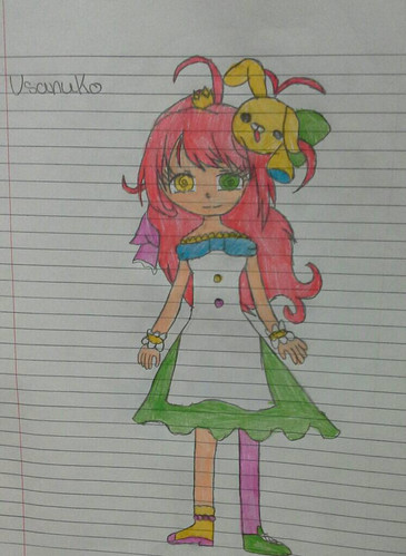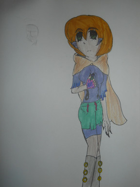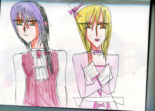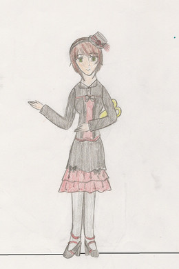 Here is a request drawing by , the character is a mii avatar I think which trying out the chibi style of was fun but I also wanted to draw a bigger character for them. I honestly think suspenders look really cute so I usually find them fun to draw although I do kind of struggle to work out the neck and shoulder position off them as I usually end up making the body too short. For request based drawings I kind of like doing two different drawings with a border between them, with this one I used a zig zag pattern to try and make it a bit more decorative. Also really like puting two names on each side of the border as I think its a nice joining point if I'm drawing a single character in two different ways :3.I drew the chibi version first and got through it easily, I tried to keep it more simple as I wanted the bigger character to be a little bit more detailed to contrast with the chibi's more simple style. For the taller character I tried using the kissing mouth the chibi had but was not a fan of how it looked so changed it to the usual curve that I normally draw on characters. For her buttons on the right drawing I made the line the come off two thick plus drew lines of her hair points to try and make her hair look a bit thicker. Also a final change I made was attaching the bow to an extra neck collar, sorry its not the most detailed drawing mainly just tried to have fun with it.