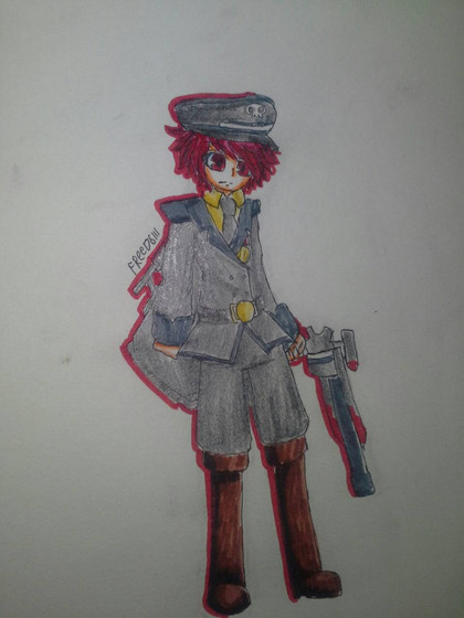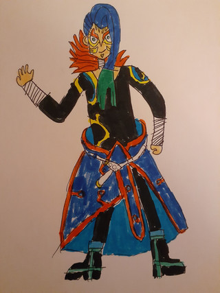 Eight is who I plan on having as the first antagonist of the story as I see him being in charge of some group with Noelle getting his attention after beating a member. I didn't think of a motivation before drawing but one I want to go with his him and his allies trying to control the competitive scene by keeping out people they find un worthy and maybe having some pro's be indebted to them by throwing battles for them. A sort of theme I want to go for with this story is people not being as passionate so I think this sort of control aspect could play off that well and ya know Noelle could get her opponents fired up againI honestly feel like I have both used this outfit style before as well as the colour scheme but I guess seeing similarities between my characters is interesting. I tried to give him much shorter hair which I like the look off, a habit I have is almost always drawing a section of a characters a hair go to the shoulder. Also his deck type will be metal, I like the idea of a mixed monster deck of metal stuff granted the only thing that popped into my head was knights....I am sure I will come up with more ideas.
