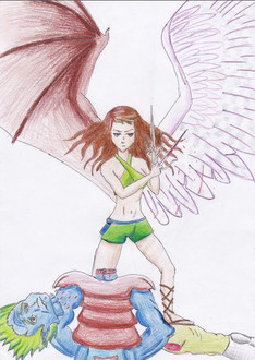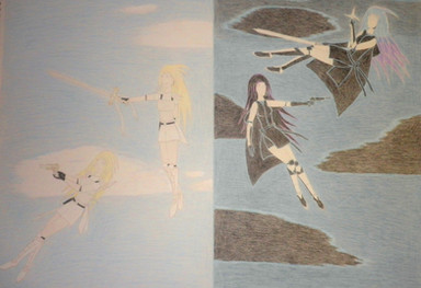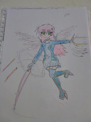 While looking through a pile of old drawing I found the first version of this drawing (left) and felt like trying to draw it in my current drawing style. I prefer my current drawing style but the original was an ambitious drawing for me as I was testing out a difference stance with the feet position and the way the sword is being hold, I have probably done with of those things a bunch now but this drawing was one of my first attempts at them if not the first. One of the things I find interesting is how differently I draw hair now as I used to have a much wider and flatter style, the really wide beanie is painful too look at though o-o.This drawing was my attempt at trying to draw a special attack shot since I love a lot of animations for them in games so it was something I wanted to try out. It's one of those drawing styles I don't use now as it's tough to think of a pose and effect for the attack I want to use plus can't even begin to think of a character I would use for one. Maybe if I could come up with an idea I would go for another one though as it would still be a fun drawing theme to use :3.