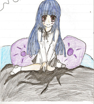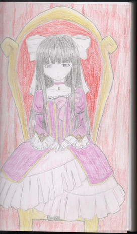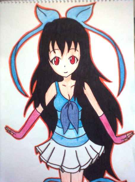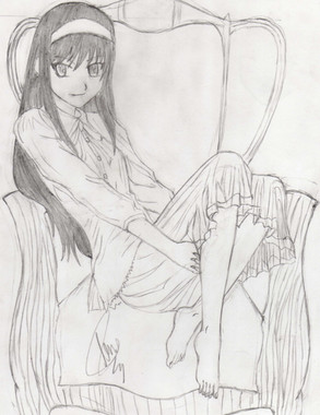 I got the game she is from last night and I already really enjoy it, it is maid by the same person as RainbowYgg and uses colour changing mechanics thus the vague name of the game. Basically it uses the red, blue, green type system (can think of it like Fire, Water, Grass from Pokemon) with you activating cards that increase each colour value to make your character stronger and then here hair+outfit changes colour depending on the combined values of the three colours. Then also you can change their personality by activating cards with another value with the design here being the base one, the personalities get their own unique cards too with the goal being to get 3 opponents health to 0. Sorry if explaining the game here sounds awkward I just really like it's mechanics.This is one of those drawings where I just feel proud of the over all design to the point I don't get put off by some issues like the leg on the left being a bit thinner. Originally I tried drawing the point they bent at for the sitting pose but it looked off so I gave up and draw the skirt over it. The chair looks really cool as a background object and it gives me Caligula Effect vibes (the characters sit on a chair on the status screen). The light blue colour scheme looks very gentle and relaxed with me initially thinking it was light green in game, seriously suddenly I just stopped seeing it as green.