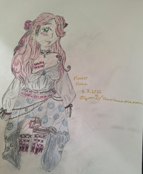 Wanted to draw this person for the past month but kind of on and offed about actually going for it then after seeing a picture yesterday I finally decided to go for it. Just want to say the hand was an absolute pain to draw, I re drew it at least 5 times but I still couldn't draw the figures bent in the way I wanted so just accepted the result. I also tried to draw tattoos she had on her arm (some were too detailed for me so I didn't even go for them as they would just look too simplified). The reason there are two chairs is that the image was taken with a crowd in the background so I thought they would actually work as surrounding objects (I also kinda just wanted to draw them for the sake of it lol). Even though I hoped the details would of wen't better I feel proud of how this drawing came out and it was really fun.I started with the shorts for this as I used the right side to work out the height of her upper body as well as the width of her stomack and top. The fishnets on the right leg being cut was a small trait I thought would be fun to draw as I think it looks cool due to it breaking the symmetry of the outfit. Her hair looked red to me but I felt like I saw some pink tones in it so I added a pink layer although it didn't really show up in this drawing although it lightened it a bit. Also proud of how I angled the head as I think her body looks more like it turns to the left while the head turns to the right and the opposite angles works well together. The sleeveless jacket was also really fun to try out in this drawing plus its gray tone works nicely with the red tones of the rest of her outfit.