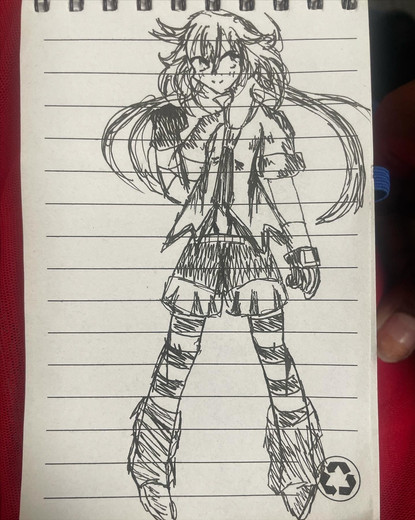 A few weeks a go I realized that I had mistaken an image of her for a character I had previously drawn due to her being a google image result for them o-o, wanted to draw her again as I found this outfit really cute. Her hair is suppose to be a bit lighter and trying to draw the side ponytail was a bit of a pain and even now I still feel it looks off but apart from that I think the drawing came out really well and cute :3. If I can find another image of her I may go for a hair down style drawing just to see how I feel about it as I think the left side of her hair came out really well, the desk with a pot of flowers was a pretty nice background object and it looks pretty good.For this drawing I drew out the left sleeve first as when it comes to this pose I tend to prioritise the arms over the body and it went well, the right sleeve feels a bit too thin though as I was not sure on how to angle it properly. Her dress also looks really pretty as the buttons with lining on either side of them looks amazing and they were a very fun decoration to draw, I also feel proud of how her eyes came out as the colour didn't come out as flat as most eye attempts of mine. For the side ponytail I originally drew it wider but thinned it down to try and match the original image a bit more but too me it just looks off, I may of made it flow too far out to the side (I find side ponytails flying down wards hard to draw). The background painting was originally on the right side but due to me writing her name on the right I switched it too the left, it also only had its corner showing so I tried to draw it in a cut off style that looks really nice.
