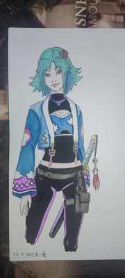 She is a member of the main trio who a bunch of people are trying to capture, she ends up getting attached to the playable character which is quite cute. She is a part of a species that is treated poorly in the game and even among them she was treated bad with her parents being the only ones that were there for her (Hit Point have more mature feeling games). She is pretty much a mage as she uses spells and is weaker to physical damage (in this game characters have 3 skills and a set amount of mp which was an interesting battle system).Her design came out a bit more simplistic due to her outfit not being that designy, it may of been better to do a full body drawing so may try that out. I feel she looks more human than other members of her species but that may just be due to her having an actual portrait, I like the use of cloaks for characters in this game. I'm happy I was able to separate the hair and skin colour as I basically used a rubbed out writing pencil tone for both of them with me trying to make the hair a little darker.