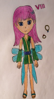 Lupy is the 4th and final party member in this game, I wanted to draw her to finish off a party members drawing series cause I could do with doing that more often.....She is a boss that Gwen 1 v 1s with me always giving Gwen stat increasing items before this fight, Lupy acts like a sort of mentor to the group which is interesting to see. A plot twist with her is kind of obvious but it made sense so no complaints just interesting how some twists are obvious while others are out of no where. She starts knowing all basic level elemental spells so I assume she is a magic specialist and the weakest when it comes to physical attacks.I like the nature theme outfit as I think it plays off her being a fairy really plus green and pink is a very peaceful colour combo, it feels kind of weird not drawing second curves on her wings. I went for an almost full body design with her as she is a smaller character and I tend to prefer to show as much of shorter characters design as possible/I can't scale up very well.