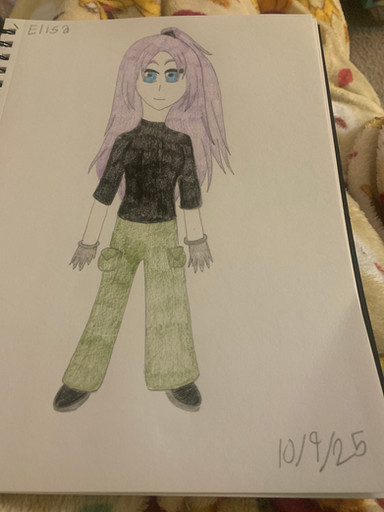 At first I wanted to re draw a character I felt I could of drawn better but I struggled to find an image I wanted to work from so instead I decided to try and draw an anime style maid. I changed her hairstyle and colour to make her feel like a custom character, since this was just me wanting to draw maid I don't have plans to add her to a story verse but who knows maybe I will one day as I do feel happy with how the design came out. I think maid outfits look really graceful thus me having fun drawing them, I picked this outfit style as I feel it is the one that comes to mind.This drawing was a bit of a challenge as I struggled to draw the outfit as I felt I kept making the body too wide (you may notice the rubbed out sketch lines) and then I started to worry about the drawing too thin/small. But drawing out her head made me feel happier with the scale (I worry about body scaling a lot but drawing the heads tends to make me feel happier with the result). For her hair I used a different purple from my usual ones, at first it came out too dark so I added a white tone over it and I feel it works really well as a hair colour as the purple looks really great alongside the black and white outfit.