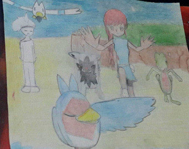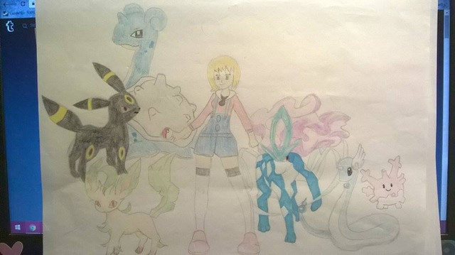 Here is the 6th gym leader in Shield who uses ice type Pokémon, it was kind of interesting to see Lapras as an ace Pokemon but at the same time I think of it as more of a gift Pokemon. So her gym has pitfalls and you have to use detectors to find the right path (they rumble when you are near a trap), the game gives you check points and on the final section there is a snowstorm which makes it harder to see. Since my Bea drawing I have watched a playthrough of Sword and have seen that the 4 and 6 gyms have the same puzzles in both games but with different skins and was kind of disappointed o-o, I would say the 6th gyms chose two types that both work with the gym puzzle though.Very proud of Lapras's design as I think I shaped it quite well and the backwards pose with the head turn looks good, I think Melony has more of a basic design and I was not able to match the body proportions of the original. Honestly was not sure what colour her hair is suppose to be I just went with a lightened blue gray tone which I think looks nice and stands out against her outfit.