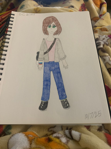 She is a character you meet in the first scenario as she is worried about Natsukagi as is a friend of his, she ends up helping out during the second scenario so guess she is a main (I was expecting only 2 characters to be mains). She uses a lot of phrases the other characters don't know I believe, I like her design as I feel the eyes, hair and dress give her a very unique look from the others. I feel like she does not look like is standing straight in this drawing due to the upper body looking a lot shorter (I guess a bit of a bending over look).I think the limited colour scheme gives this drawing a more interesting look, I'm not sure if I will go back to drawing the shadows as I kind of prefer not adding them just they look cool when added o-o. In the sketch I actually forgot to draw her hair accessory, so it was a last second addition, probably need to play the game a bit more before deciding my next drawing.