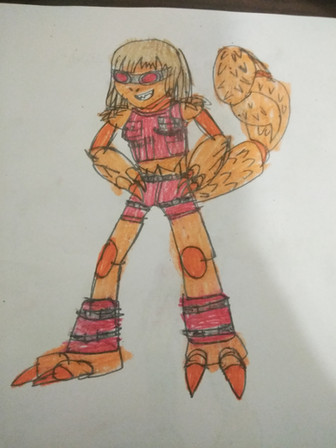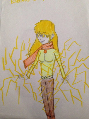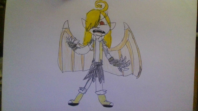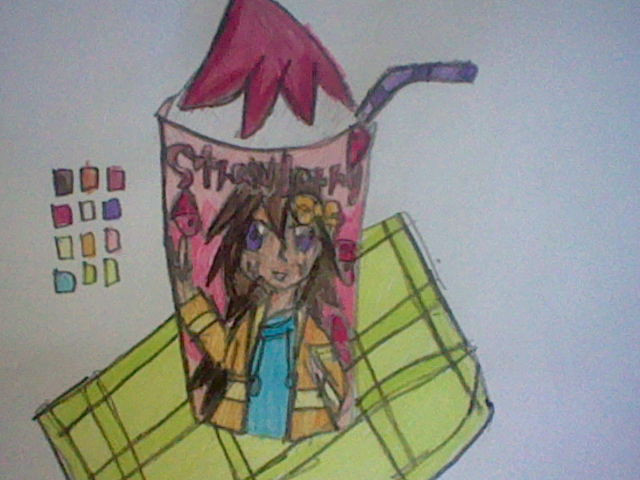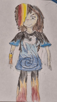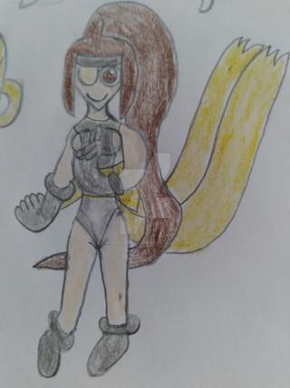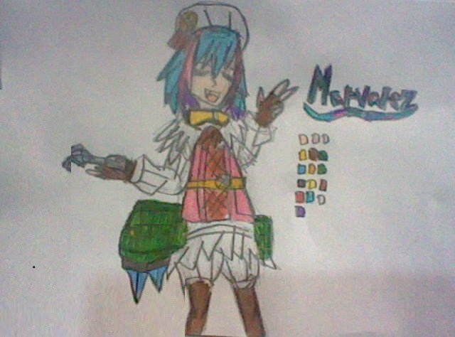 Another drawing idea for this character was to draw them banging the instruments together like the toy, sorry I forget the actual name of the instrument. I wanted to draw her sitting in the knee up then leg out position but didn't pull it off here since the knee bend wasn't high enough, the standing position does work though. I gave her a dramatic eye closes style make it seem like she is being excited with the banging and also attempted some waves around the instrument.I don't have any more ideas for this character at the moment so hopefully will think of something else as I think she has a cute design and could be nice to experiment a bit more with images.