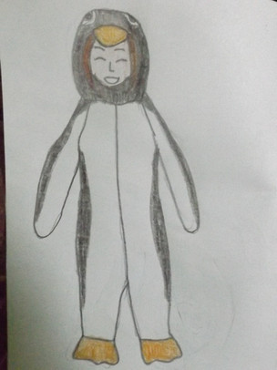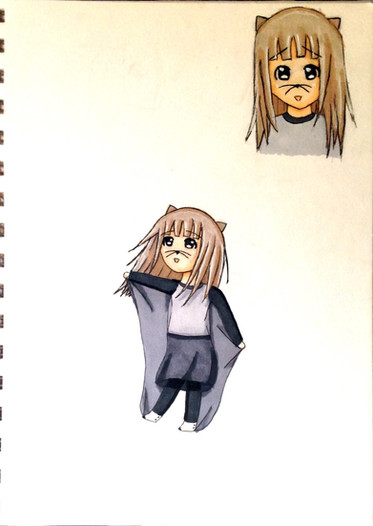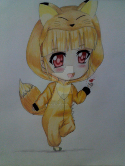 So after the last drawing I was told I should draw her in a monkey onesie next and I felt like going for it, I drew this last night but saved for posting today. It feels nice to have a finished drawing to post today so I can work on some of my drawings that are more time consuming, I was actually surprised that I did the whole drawing last night as I tend to only do a sketch at night. I also tried to give her a more energised pose with me doing the usual unique hand gesture I for plus the raised leg makes her look more excited. For her hair I decided to draw more of the hair poking out of the hood since last time I drew it covered by the hood in the last drawing.In the past I had another onesie drawing planned in the past but I have put it off for ages o-o, I have a few ideas that I put off that I feel like I should get done at some point.