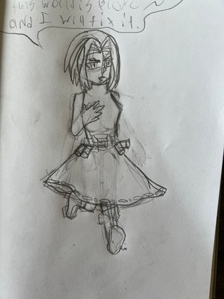 Water Illusion- This is based of my character Graekela's ability where she creates water versions of her self, for its design I tried to draw a pool of water with too water versions of a human coming out of it.