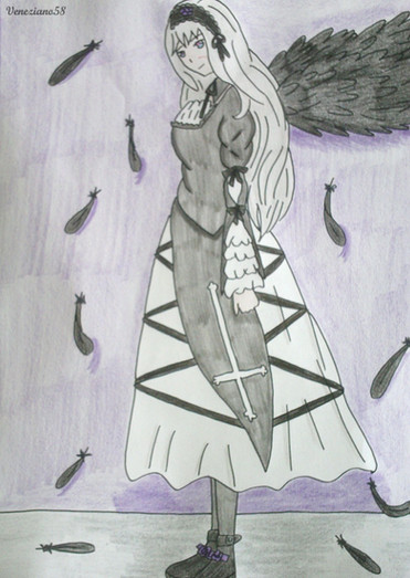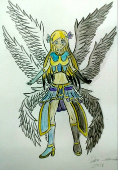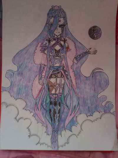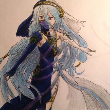 Persephone is one of three demon generals who are shown attacking a ship with a king at the start of the game, she and another character took on the forms of his children while the third went off on his own. While the other two want to reunite with their king she actually want to kill him and she is increasing her power by taking in excess energy from defeated demons. She also manipulates and Elf who is the Captain of the strongest brigade as he has a lot of hatred due to wanting to be valued by the Princess (who she took the form of) and finding most others below him. I like the varying levels of loyalty between the three generals so I think drawing them all could be a lot of fun, the reason for the more human like form is it apparently helps the generals to utilize their powers more.For this drawing I drawing from a portrait and battle sprite again with me leaning more towards expanding the portrait's design over matching the battle sprite's pose. I like the mix of blue and purple here it gives off more of a darker vibe which works well with her more evil nature, the gray skin was also interesting to try out, it funny how blatantly none human her and another general looks yet they still get mistaken for the Prince and princess. Stuff like that makes me wonder if the characters see them differently and the version here is just for the players benefit. I'm excited to draw the general who disguised himself as a Prince but the third is gonna be tougher as he had a generic sprite, I may try and make it seem more unique.