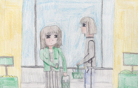 Full anime name is "The Masterfull Cat is Depressed Again Today" but could not fit it into the title alongside the character title, I basically watched a scene where the cat goes shopping. I liked this shop assistant as they seemed pretty cool headed yet had moments of over dramatic shock when she was caught observing the cat. Also it was fun how she both thought it was someone in a costume yet also pointed out slight animal behaviors by them. I am not sure if I will ever fully watch the show, it does seem to have a lot of fun scenes just I am more into watching gaming stuff and older Soap Opera episodes.I think her arms look a bit too skinny here but when I drew them a bit wider that also felt off so no idea how I could of compromised o-o, I also have a tendency to have characters wearing arm accessories so maybe I am just yet to hit my acceptance point with bare arms.I considered having the background stuff just be sketched.....then I just really wanted to colour the cardboard boxes. I also tried out the not re outlining the none clothing but this probably was the best drawing for highlighting it's look.