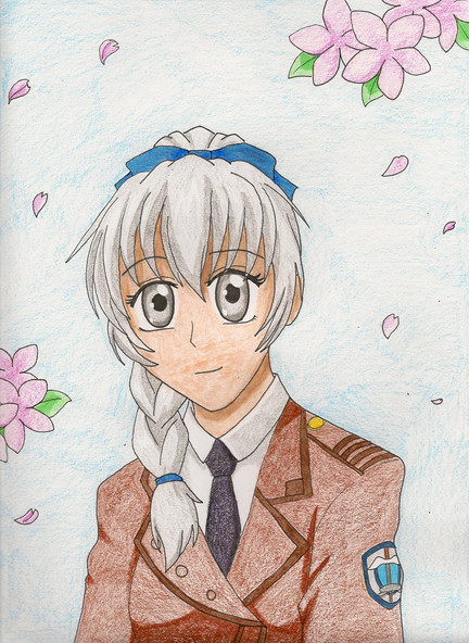 While looking through past drawing I saw one of Syaro and I instantly wanted to draw her again due to the uniform style in this show (it feels like it has been ages since I last drew an outfit like them). On another site I decided to post my previous drawing of this image and my gosh seeing them together was interesting as I think both versions of the outfit look good but here I drew out of my of her legs in and gave the drawing thinner proportions. While the old version only had the top of her legs while using wider proportions and it felt crazy to see too different takes on the same image and thinking both styles looked nice =^-^=.I almost drew her a lot taller but I decided to scale down the drawing a bit and I hit the ideal height I want drawings too be (sometimes I when I draw characters taller I feel I make the upper body too long). Other than the buttons I only used a writing pencil for the colouring which is kind of satisfying to think about :3, the hair look a few attempts as I felt the ends looked off compared to the reference image with me eventually feeling happy with my attempt at them.