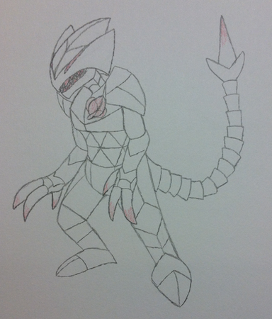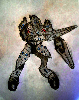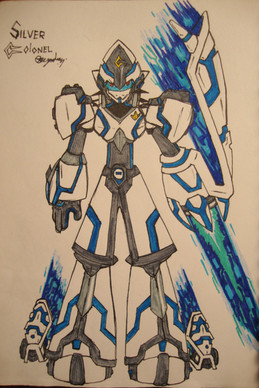 Sylux is one of 6 opposing bounty hunters in the games story and I believe the last one you meet and he wants to take out Samus Aran (Portagonist of the series) due to the organisation she is apart of. Each hunter in this game has a weapon that gives them a unique ability if they have it and Sylux's is an electricity gun that they can absorb health with which makes his boss fight a pain lol. When I was younger I thought he was some kind of monster due to his screams but hearing them lately it sounds like Sylux ses ouch in an altered voice so they could be human, a lot of people are fans because of the mystery behind them. I decided to draw Sylux as I have been watching theories where people think they might be in the up and coming new Metroid game and it reminded me of how awesome Sylux is :3.One of the things I really like about the design are the patches of green as I always thought the helmet strip looked really cool and I think it goes well with the blue armor. I was a little scared of trying to draw the stance as Sylux is kind of bent and his left arm crosses over his thigh area but I felt okay with the drawing as I just hand to draw his legs off the arm. I kind of tried to match the blue's on his armor but for the legs I just decided to make them blue gray to add a little variation to the rest of his body as it has slightly lighter tones. The waves coming off the blade arm are meant to be the lighting from his special gun as the game using blue thunder waves but I think they are slightly brighter I just didn't remember the colour off the top of my head o_o. I think the pointing shoulder blades are a cool design feature :3.