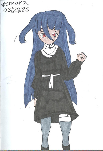 Sorry wanted to draw another member of the Darkness Tribe, Valora is an archer and will be one of Lady Dukbelle's guards but in a more hidden location to take down attackers with his bow. Valora is a former member of an attack team but was re assigned to be a guard due to his skills but misses his previous position but does not want to argue with his leader. If a meeting is held to decide on certain plans he will be one of the warriors invited to offer his stance on the situation as I'm thinking of his objecting to Lady Dukbelle's plan of taking the Sword of Odalsela. Even though he fears questioning the leader he does not want the lives of other tribe members to be put at risk over a desire of power.His outfit has red flame designs on his pieces of clothing as a representation of him being a former member of an attack team, also think the warm red contrasts with the colder colours of his shirt :3. I gave him a fox mask to have more than one character wear them but this time had it hand from the side of his face as I prefer that style =^-^=. For his trousers I tried to do the hatching line style with a darker tone then coloured the rest in a lighter tone, also normally the center of the ankle guards are a light gray but I gave him blue ones to match with his mask