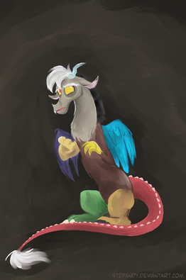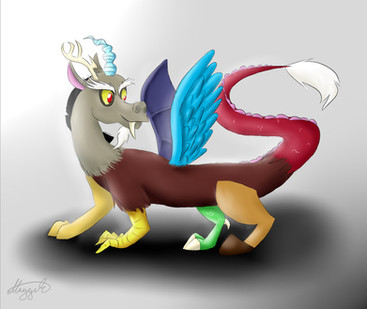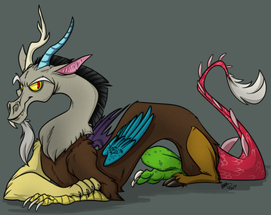 This is very nice. I love the shading you did. And the light reflecting off of discord is perfect. I like how the scales can be seen where the shadows are. a n d n o w i h a v e t o f i l l i n t h e r e s t o f t h e n e e d e d s p a c e f o r t h e w o r d c o u n t s o d o n t m i n d m e.