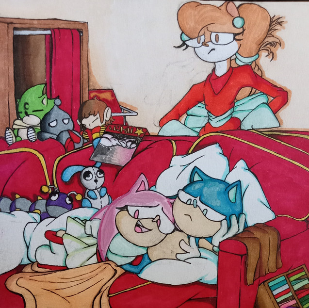 This is a way long over due picture I owe a great friend of mine, so I wanted to get this outta the way first before anything!This is a commission for to which I am also working with on her comic about tails and amy. And in return she will be working with me on the Shadamy comic as well!! Which I look forward to since she's all about that romance ;D (what a loser. love you)