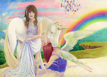 Did this pic some months ago, but never posted it on dAI asked my friend to give me a random word, and then she gave me the word "Rainbow". Alas this picture was done
